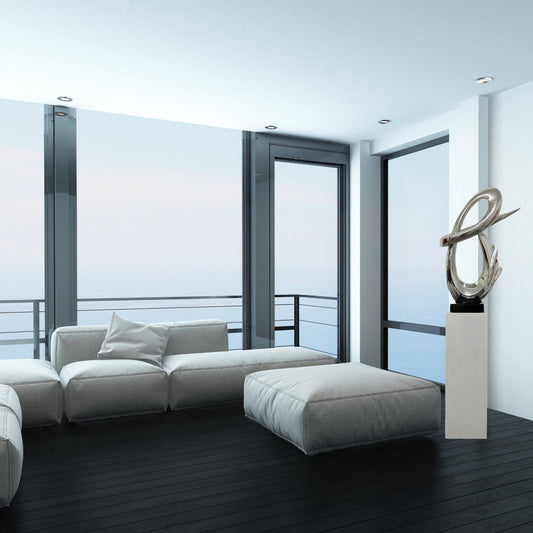 Chrome Fluid Abstract Floor Sculpture With White Stand, 59" TallVendor:Finesse DecorRegular price $999Regular priceUnit price per$0Sale price $999