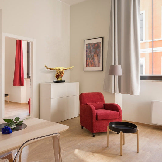 Metallic Red Sail Floor Sculpture With White Stand, 70" Tall