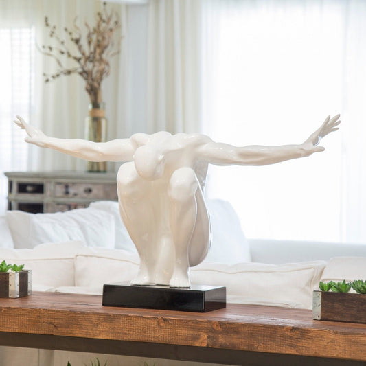 Large Saluting Man Resin Sculpture 37" Wide x 19" Tall // White