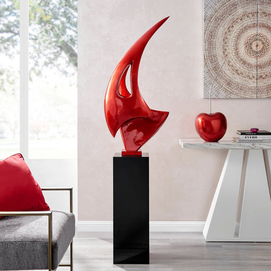 Metallic Red Sail Floor Sculpture With Black Stand, 70" Tall