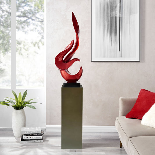 Metallic Red Flame Floor Sculpture With White Stand, 65" Tall