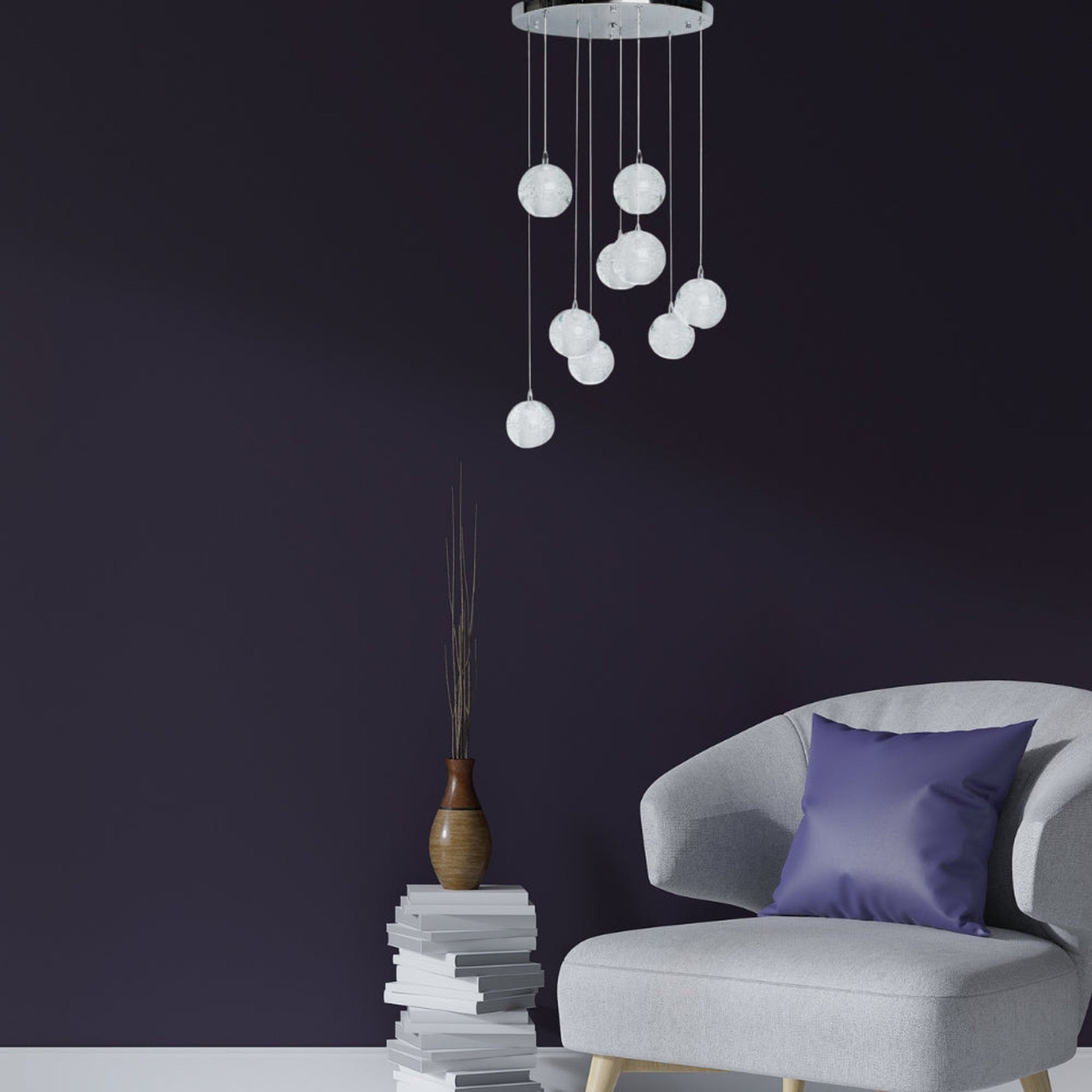 9 light Crystal Spheres Chandelier // Round Chrome Canopy
